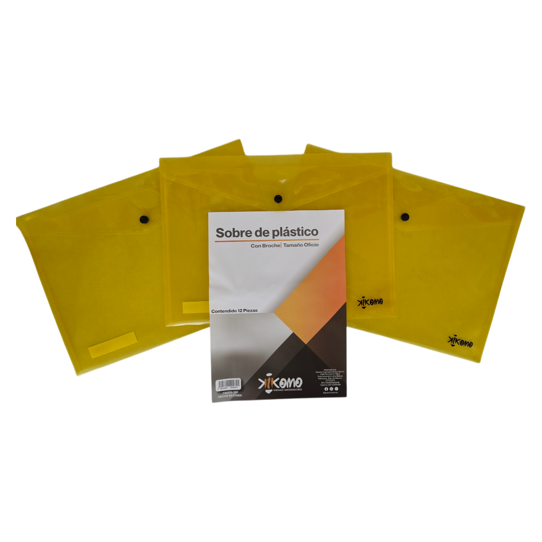 Este sobre tamaño oficio con broche es ideal para almacenar y proteger documentos importantes. Fabricado con material resistente, ofrece un diseño práctico para oficinas, estudiantes y profesionales. Su cierre con broche asegura que los papeles no se pierdan ni se dañen.